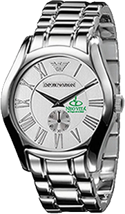 Reloj de pulso marca Emporio Armani, caja y extensible de acero inoxidable, mecanismo japonés con dos años de garantía, resistente a el agua 3 ATM con impresión de logotipo