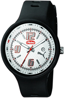 Reloj de pulso marca Puma, caja y bandas de caucho, tapa de acero, mecanismo japonés con dos años de garantía resistente a el agua 3 ATM, con impresión de logotipo.