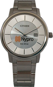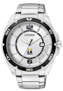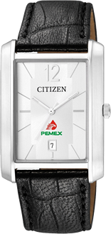 Reloj de pulso marca Citizen caja y extensible de Acero inoxidable y chapa, mecanismo japonés con dos años de garantía (ECO DRIVE) , resistente a el agua 3 Atm, con impresión de logotipo (disponible caballero).