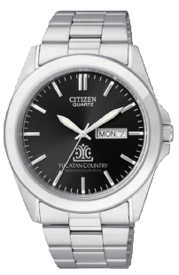 Reloj de pulso marca Citizen caja y extensible de Acero inoxidable, bisel negro, mecanismo japonés con dos años de garantía, resistente a el agua 3 Atm, con impresión de logotipo (disponible dama y caballero).
